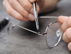 完成したメガネを実際に掛けていただき、掛け具合や視界のバランスを細かく調整します。長時間の使用でも安定して掛けられるよう、専門スタッフが丁寧に仕上げます。