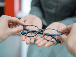 最終確認が済みましたら、メガネをお渡しいたします。お渡し後も定期的なフィッティング調整やクリーニング、視力チェックなどのアフターケアを承りますので、安心してご使用いただけます。